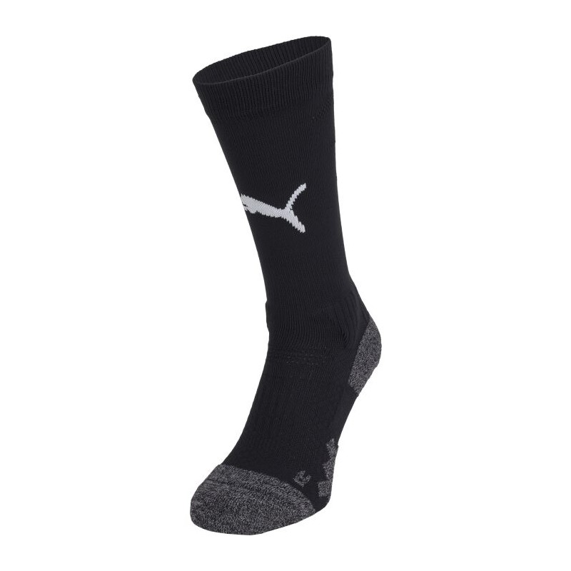 Chaussettes de foot 68% polyester, 28% coton, 2% élasthanne, 2% polyamide. Partie du talon et avant en coton confortable. Soutien de la cheville pour une meilleure stabilité. Marque intégrée Puma Cat à l'avant. Tailles : 27/30 à 47/49.