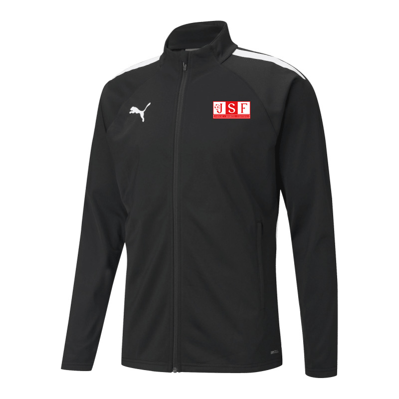 Veste de survêtement 100% polyester recyclé. Col montant et fermeture éclair intégrale. Poches zippées.
