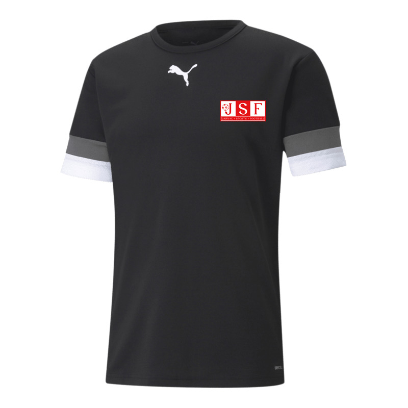 Maillot de foot 100% polyester. Col rond avec coupe classique. Bandes ajourées noires et blanches en bout de manches.
